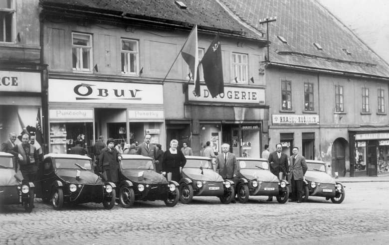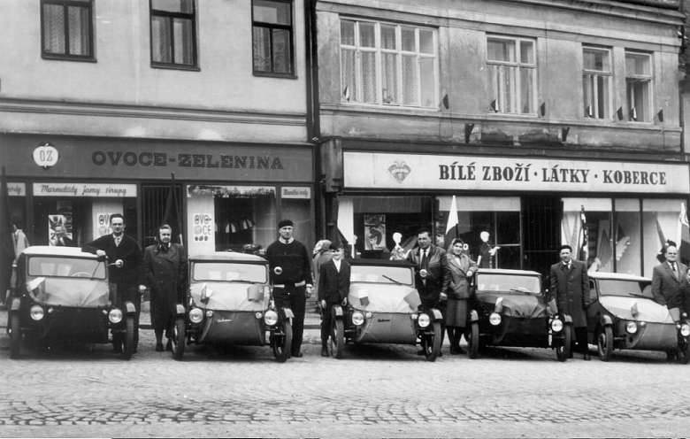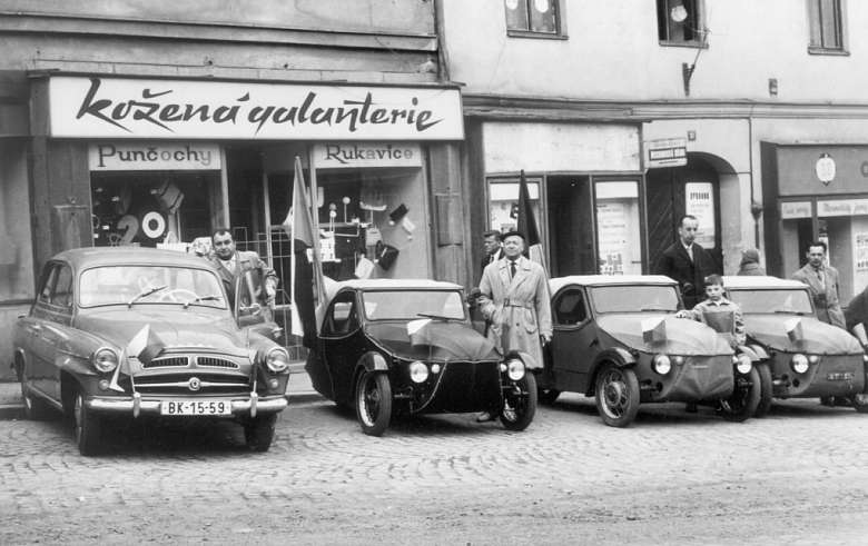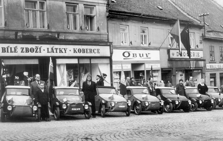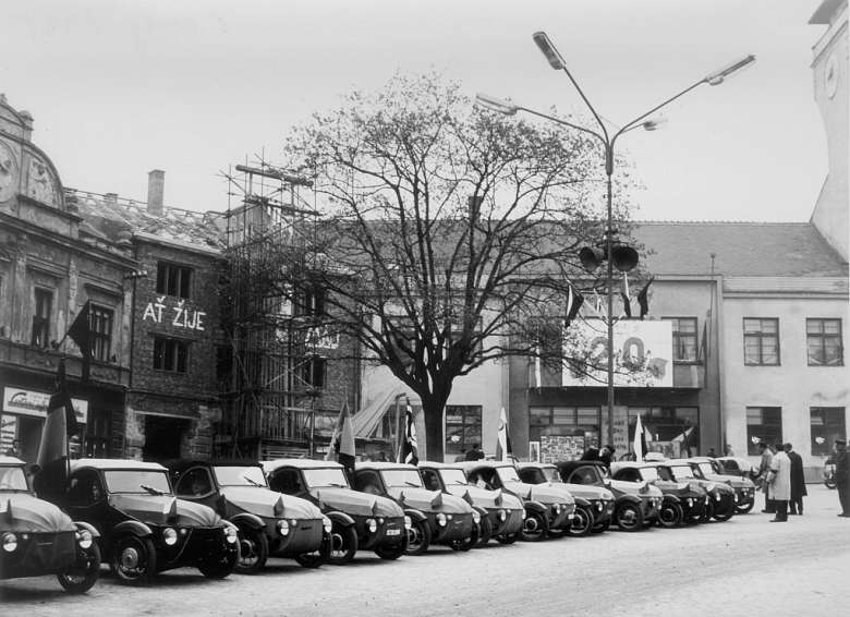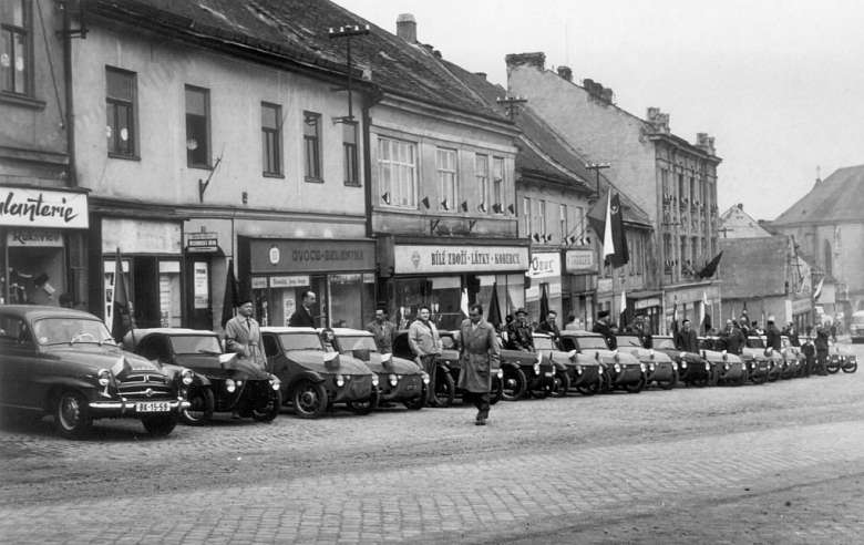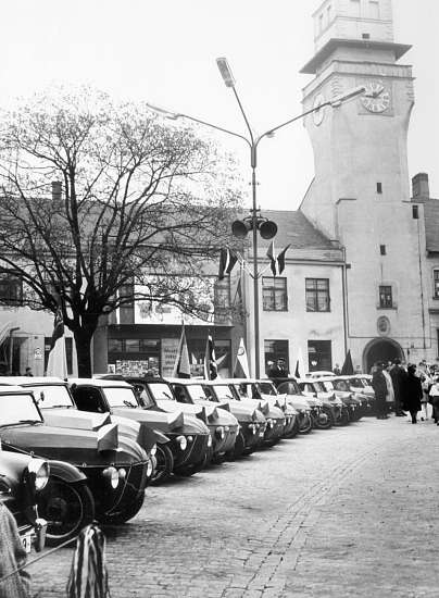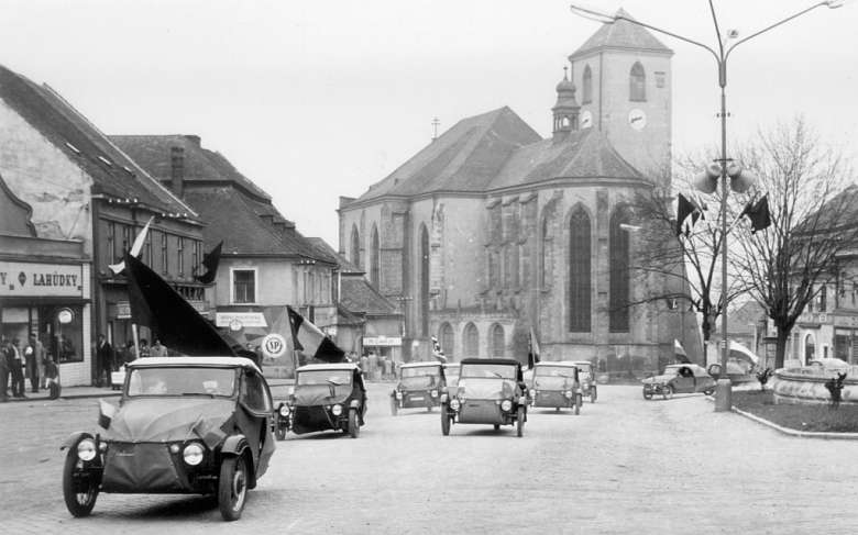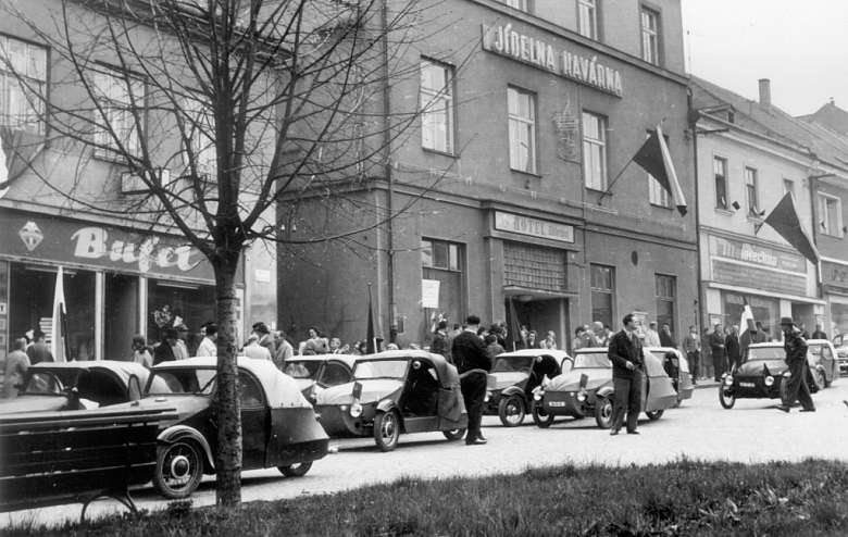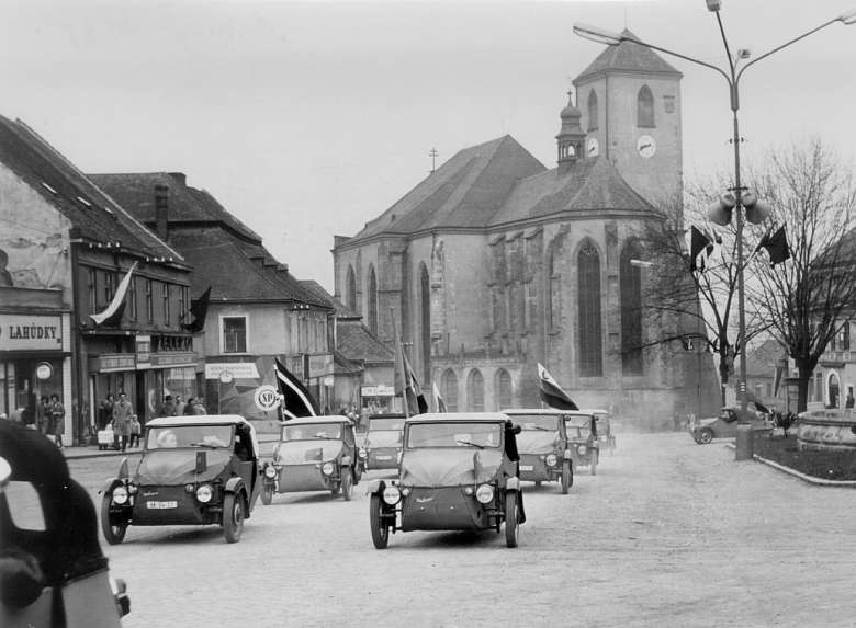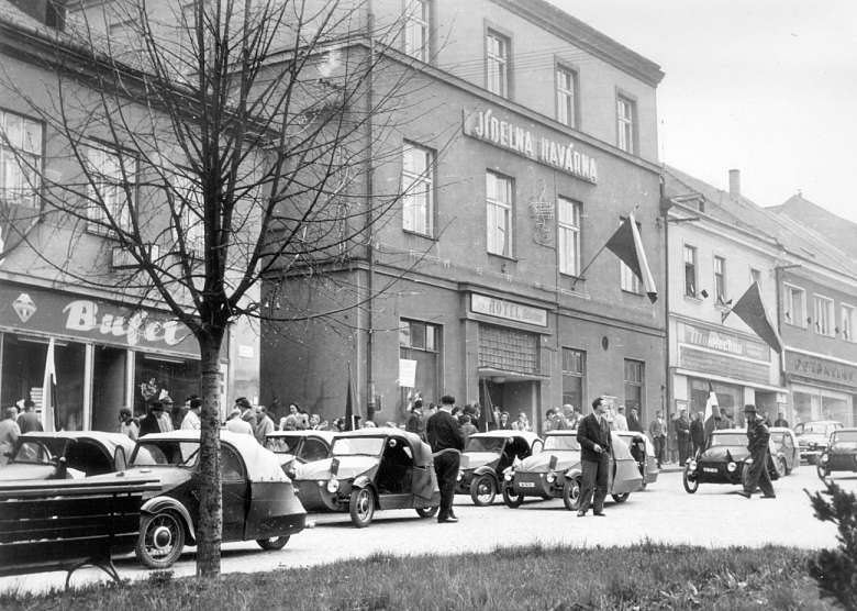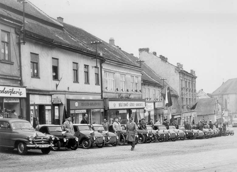 Historické fotografie Velorexů na oslavách 1. máje v Boskovicích v letech 1965, 1966 a 1967.